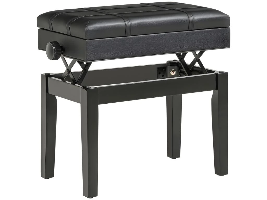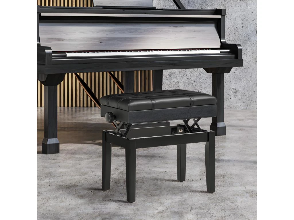 – Coffre de rangement intégré sous l’assise : pratique pour y déposer vos partitions, accessoires