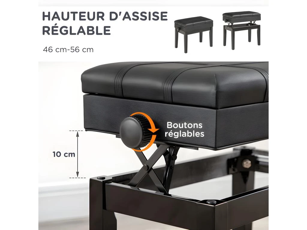 – Hauteur d’assise réglable de 46 jusqu’à 56 cm, idéal pour s’adapter à toutes les morphologies et à tous les pianos