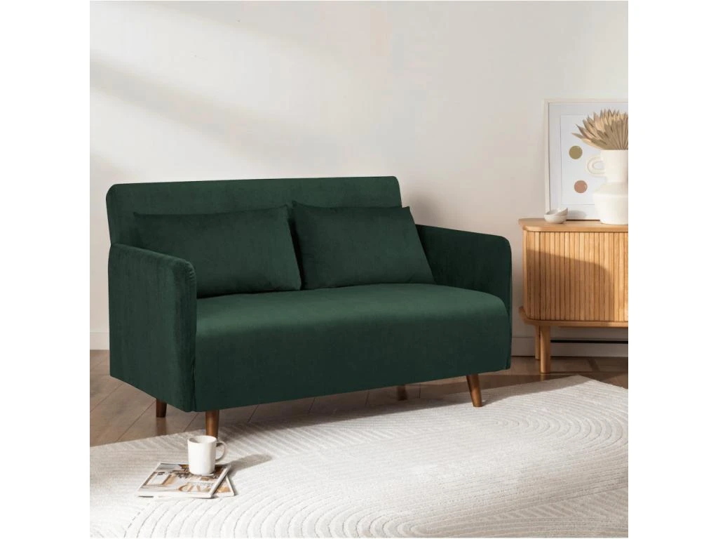 Nous avons donc décidé de décliner notre best-seller, le canapé convertible 2 places Belushi, en version velours côtelé. Toujours aussi fonctionnel, on a conservé l’ensemble des éléments qui vous séduisent chez ce petit canapé compact : son mécanisme clic-clac et ses pieds escamotables qui le transforment en un confortable couchage d’appoint en quelques mouvements, son style scandinave et ses pieds en bois.
