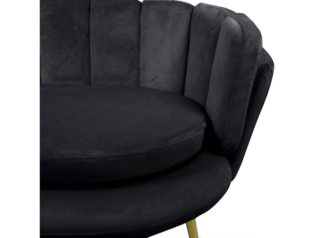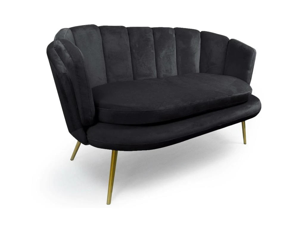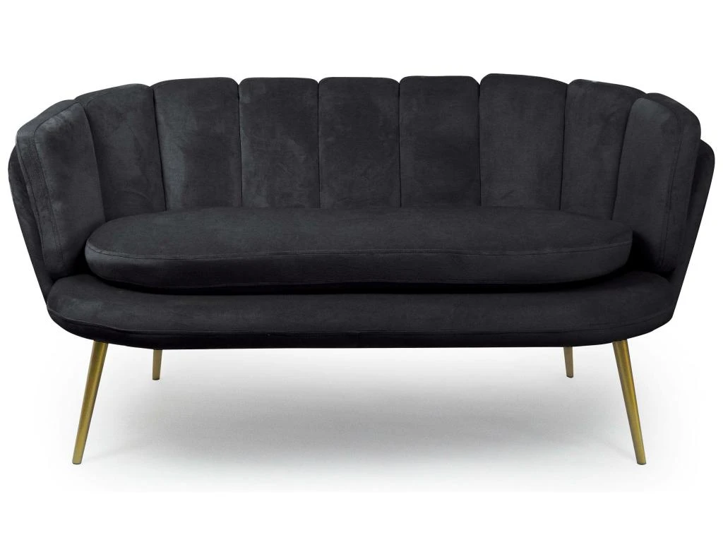 Le canapé BRENDA est un canapé 2 places au revêtement de velours très confortable avec sa forme arrondie qui épouse parfaitement le dos. La courbe de son dossier avec son rembourrage original nous fait penser à un coquillage, dans lequel on aimerait se lover, comme dans un écrin précieux… Ses pieds en métal couleur or lui donnent un coté élégant et chaleureux. Ce canapé moderne qui trouvera parfaitement sa place dans un séjour contemporain et donnera du cachet à votre intérieur. Alors n hésitez plus et offrez-vous ce beau canapé en velours confortable, un meuble chic et glamour à prix mini !