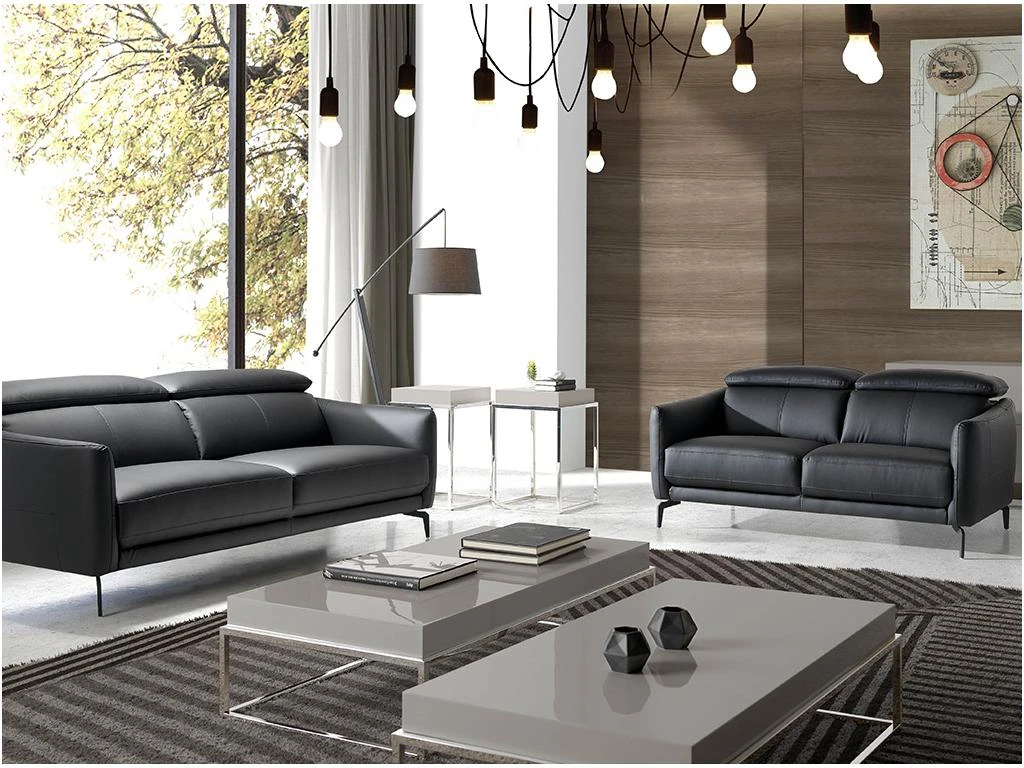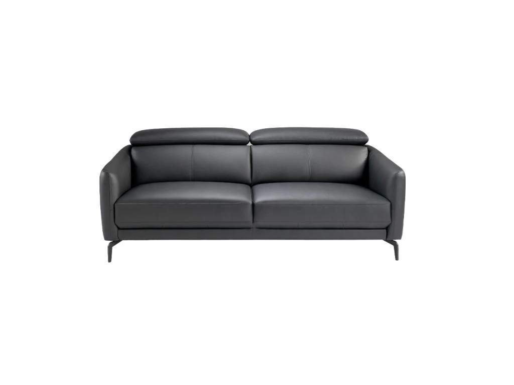 Canapé 2 places au design moderne recouvert de cuir de vachettette noir de 1 mm d’épaisseur avec appuie-tête articulés indépendants pour une plus grande adaptabilité. Un canapé de style avant-gardiste et contemporain, avec une structure interne robuste en bois de pin naturel et des pieds en acier massif peint en époxy noir qui lui donne cette touche de sophistication et d’élégance que vous recherchez dans votre salon. Son dossier et son assise en mousse polyuréthane 20kg / m3, vous offrent le confort supplémentaire dont vous avez besoin pour vous détendre. La combinaison parfaite de modernité, de confort et de design