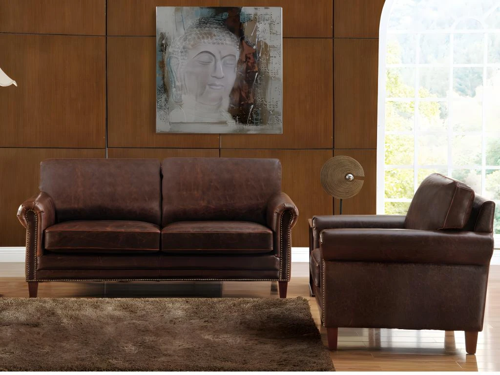 Envie d’un canapé ou d’un fauteuil au design vintage et au confort optimal ? Adoptez le canapé/fauteuil en cuir vieilli CASSANDRA ! Profitez de son design tendance grâce à son revêtement en cuir de vachette, qui donne un aspect élégant et rétro au canapé. Avec son style vintage et ses accoudoirs cloutés, le canapé/fauteuil CASSANDRA allie style et fonctionnalité. Que vous cherchiez un canapé ou un fauteuil pour votre salon, votre chambre ou votre bureau, ce canapé/fauteuil en cuir vieilli est le choix parfait pour créer un espace élégant et confortable !