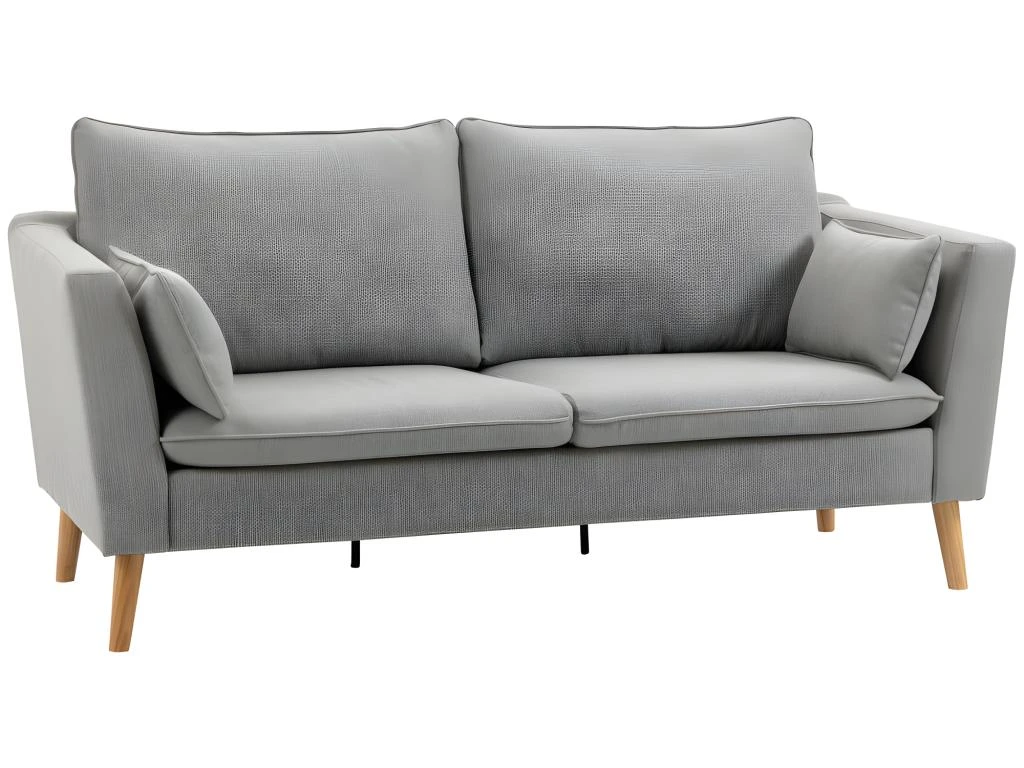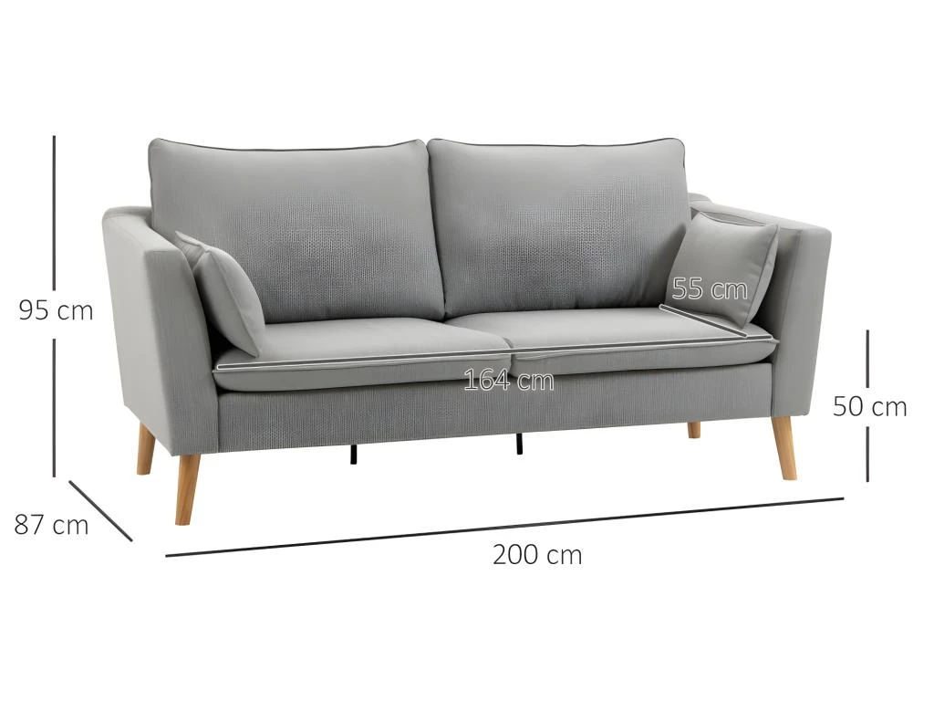 – Matériaux principaux : tissu aspect lin 100% polyester, bois hévéa, contre-plaqué, garnissage mousse, acier
