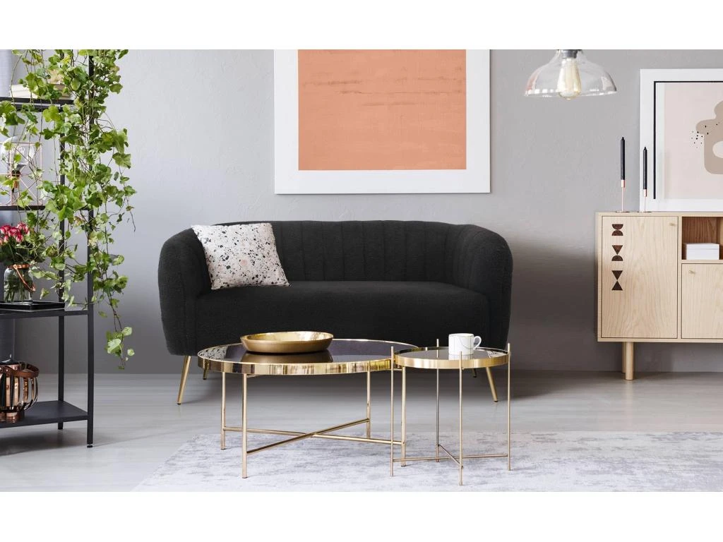 Avec ses pieds en métal doré, il a tout pour plaire et pourra être placé dans tous les intérieurs modernes. Son revêtement en tissu bouclette doux apportera un côté cocooning et chaleureux à votre pièce.