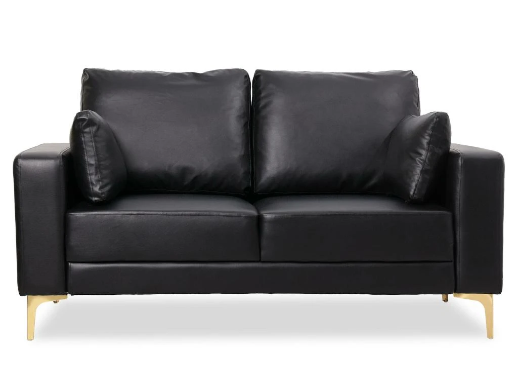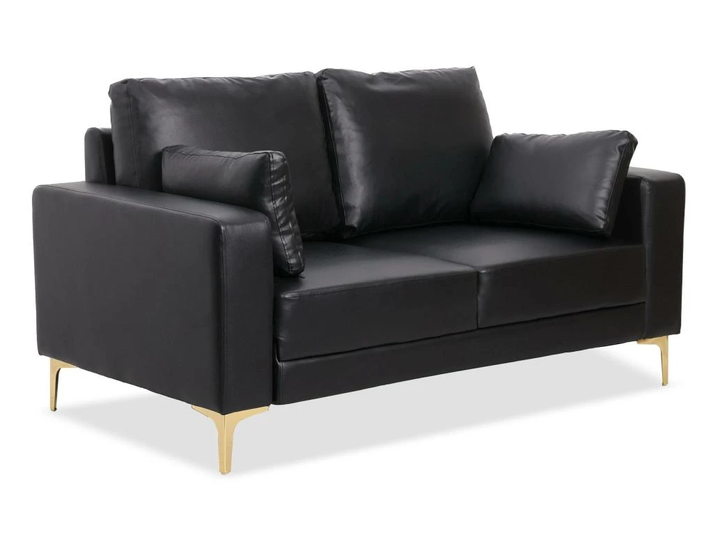 Le canapé JERIKO est un beau canapé en simili doux et résistant monté sur des pieds en métal doré. Le summum du chic et de l élégance pour un canapé moderne! Le canapé Jeriko trouvera sa place dans tous les intérieurs contemporains pour vous apporter une assise confortable partout où vous en aurez besoin.