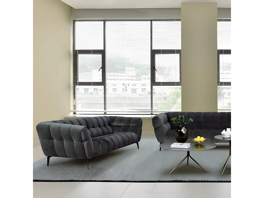 - PRODUIT : Canapé 2 places avec revêtement en velours gris BRIO.