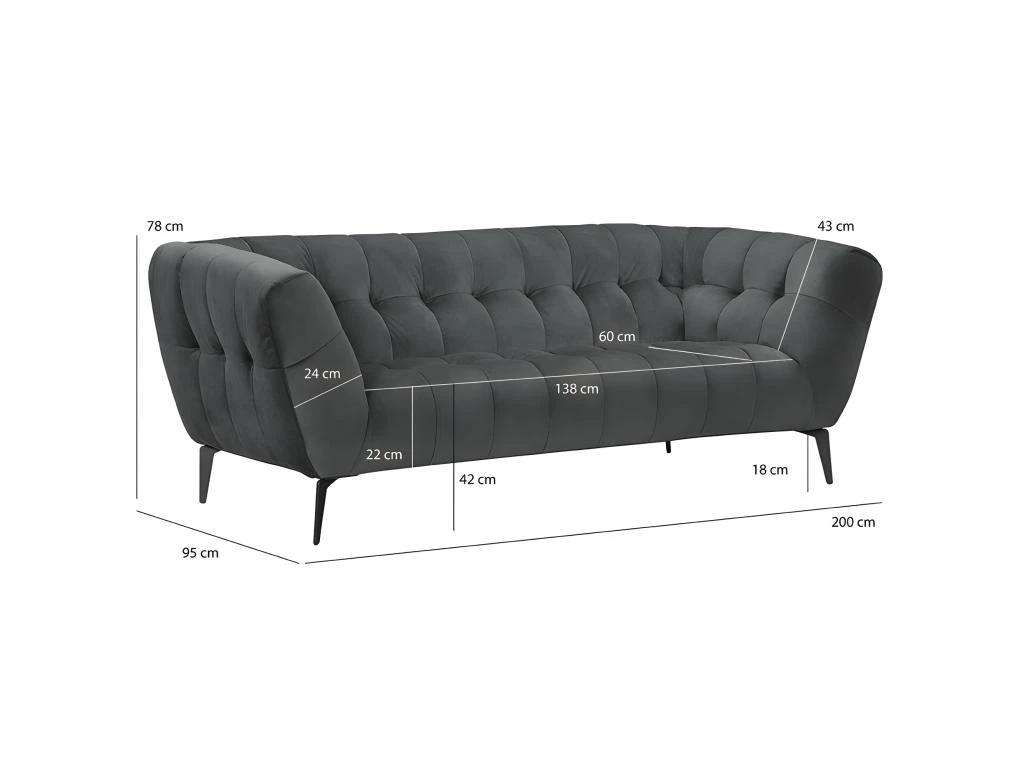Installez ce magnifique canapé 2 places dans votre séjour, salon afin d’apporter une touche sobre et accueillante à votre pièce. Son velours doux apportera au canapé un design tendance et raffiné. Ces piètements fins en métal viennent soutenir fermement l’assise matelassée et capitonnée. On apprécie son côté mi-ferme, large et généreux pour un bien-être optimal. Vous pourrez ainsi passer de longues soirées assis confortablement dessus en regardant vos séries et films préférés ! N’hésitez pas à l’associer aux autres éléments de la même collection. Existe également en d’autres coloris.