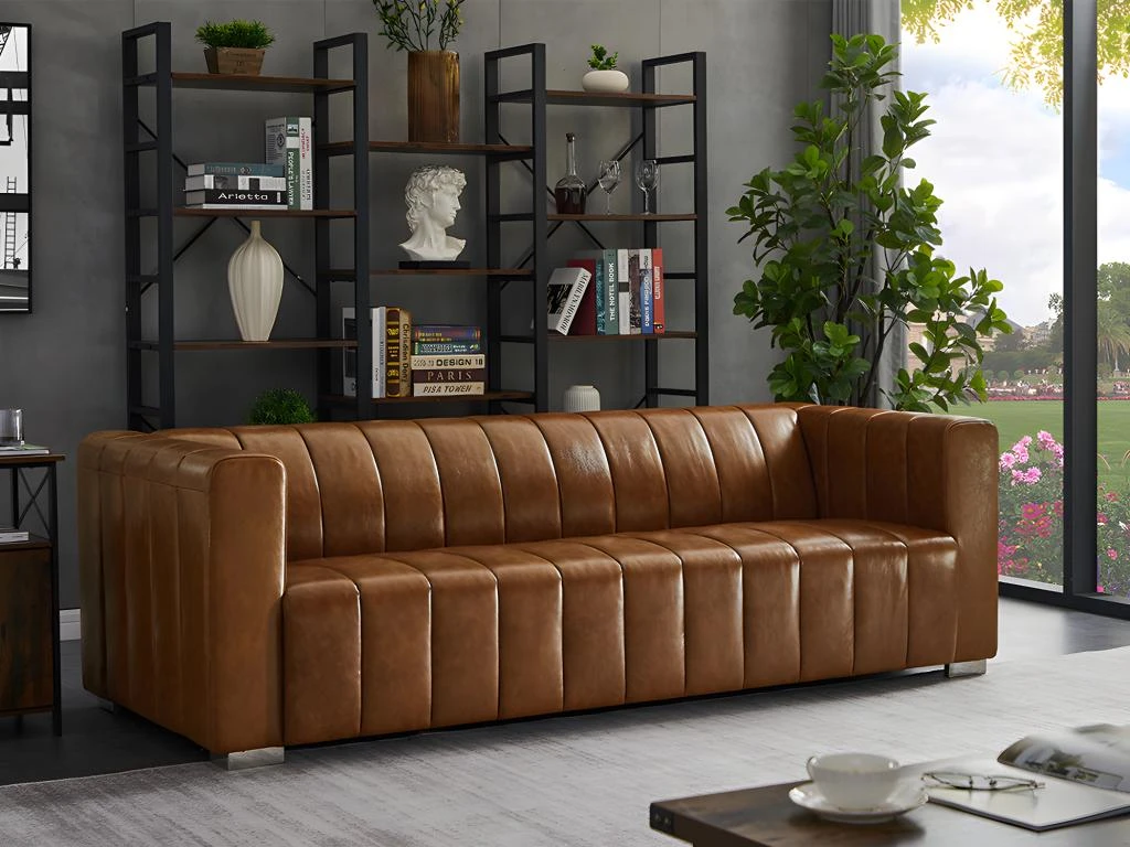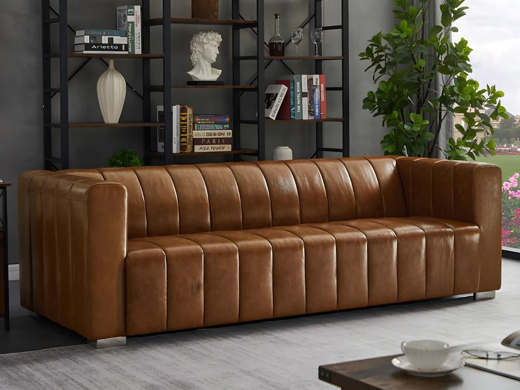 Amateurs de style vintage et de canapé cuir, le canapé PARATU est fait pour vous ! Avec son cuir de vachette et ses pieds en métal chromé il saura parfaitement s’intégrer dans un intérieur au look rétro et vous apportera tout le confort nécessaire pour accueillir vos amis ou passer des soirées confortables. Le style vintage est renforcé par son assise capitonnée lui donnant un style unique.