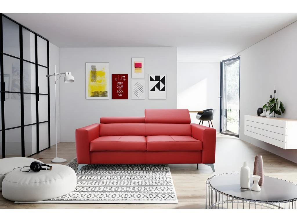 Voici un très joli canapé convertible en cuir de luxe, cuir italien de vachette. Couchage quotidien. Très pratique au quotidien et dispose de sa fonction couchage à ouverture facile. Style très pur et actuel, réussissez votre décoration avec ce beau canapé contemporain. Profitez de son grand confort. Très belle qualité de fabrication. Fabrication européenne.