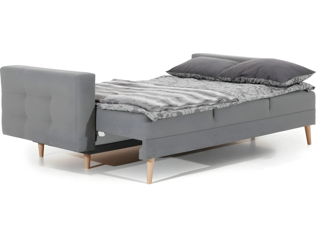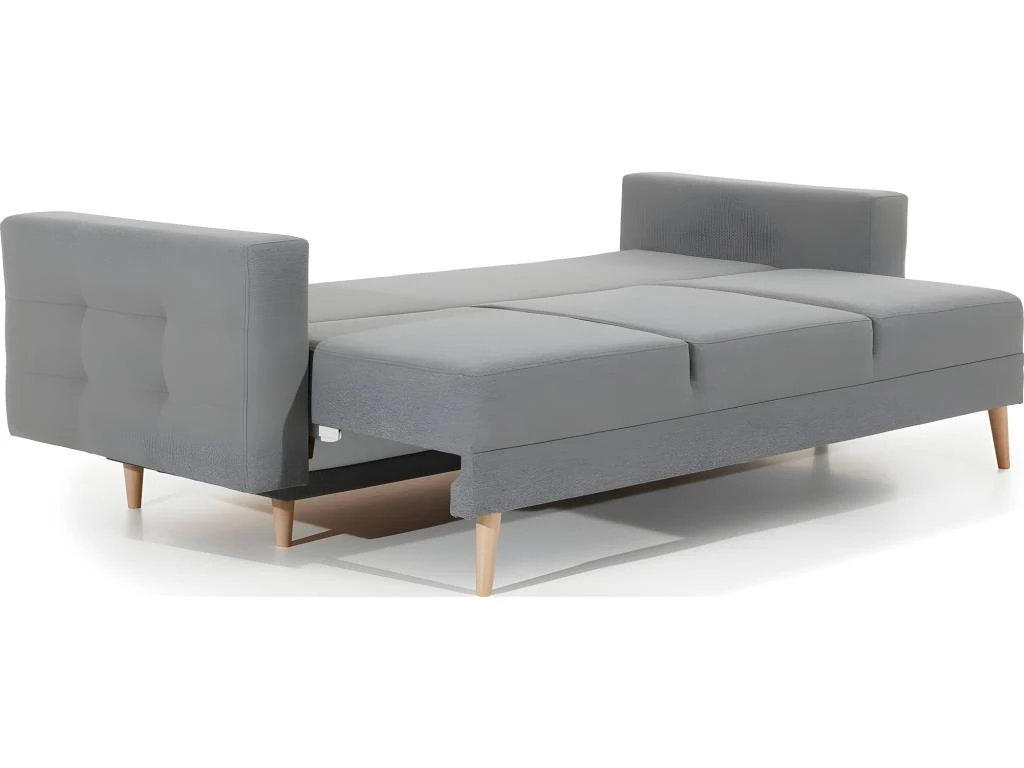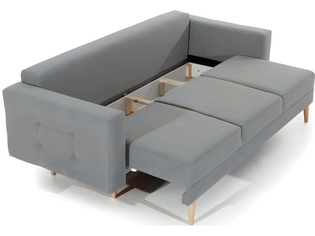 Il est très fonctionnel et mesure 235 cm de long. Il répondra aux attentes de détente jour et nuit. Il peut être transformé en lit facilement avec une surface de couchage de 196×133 cm, très pratique grâce au système d’ouverture très simple. Son assise très confortable notamment grâce aux ressorts continus doublés de mousse 30 kg/m3, contribue également à la qualité de sa structure et de son confort, offrant un soutien optimal du corps et un soulagement de la colonne vertébrale. Pour améliorer encore le niveau de confort, les dossiers ergonomiques sont équipés d’un dossier rembourré et fixé par Velcro, cela vous permet de régler l’angle de courbure pour votre dos.