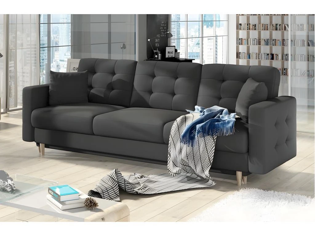Très joli canapé 3 places en tissu de luxe, convertible – ASVENA. Ce très beau canapé répond aux plus exigeants qui recherchent à la fois des fonctionnalités pratiques et un grand confort. Grâce à son large espace de couchage à ouverture facile. Tissu de grande qualité et agréable au quotidien. Tissu velours très doux et de la catégorie luxe. Assise très confortable grâce à son excellent rembourrage. Très bonne qualité de fabrication. Fabrication européenne. Tissu de la catégorie la plus élevée.