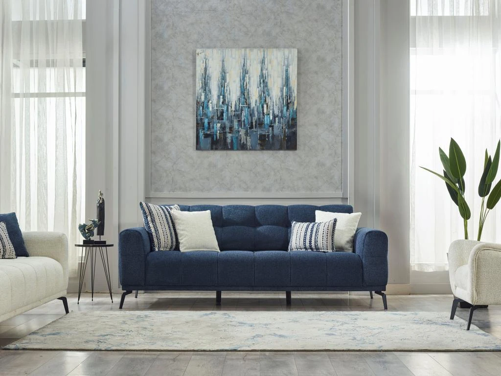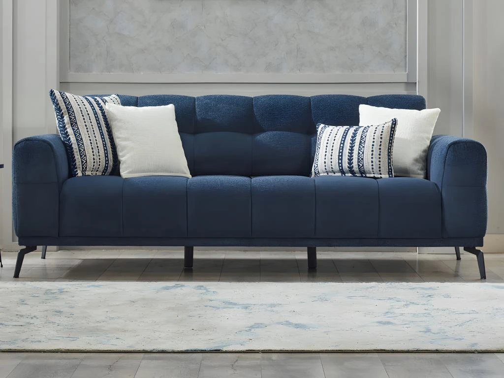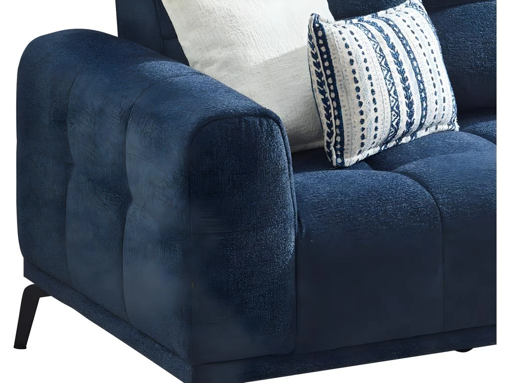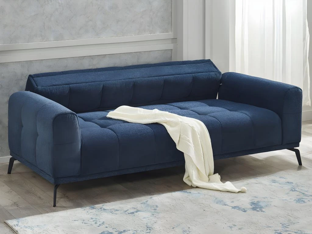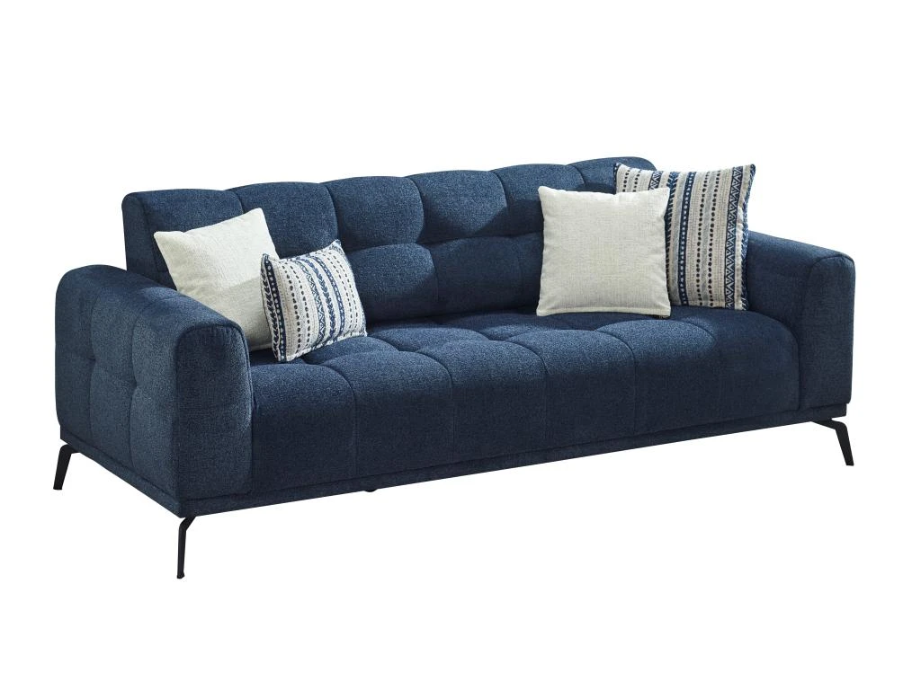 À la recherche de l’élégance et du confort pour votre salon ? Découvrez le canapé 3 places en tissu chiné RICADI. Son style design, caractérisé par son tissu chiné, son effet capitonné, son piètement en métal, et ses coussins décoratifs assortis feront de ce canapé l’élément central de votre salon ! Comment résister à son charme ?