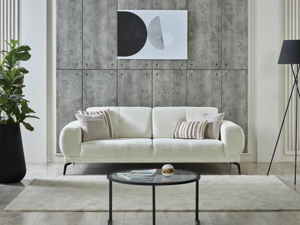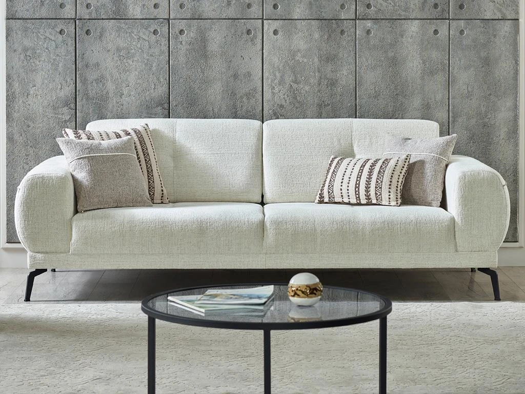 Vous recherchez le parfait équilibre entre style et confort pour votre salon ? Optez pour le canapé en tissu texturé LETINI ! Son style design et son piètement en métal ajoutent une touche d’élégance à votre espace de vie. L’option de dossier avance-recule et ses 4 coussins décoratifs inclus vous offrent un confort personnalisé. Cédez à la tentation, ce canapé sera la pièce maîtresse de votre salon !