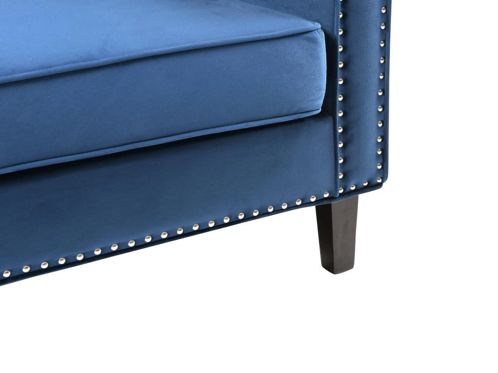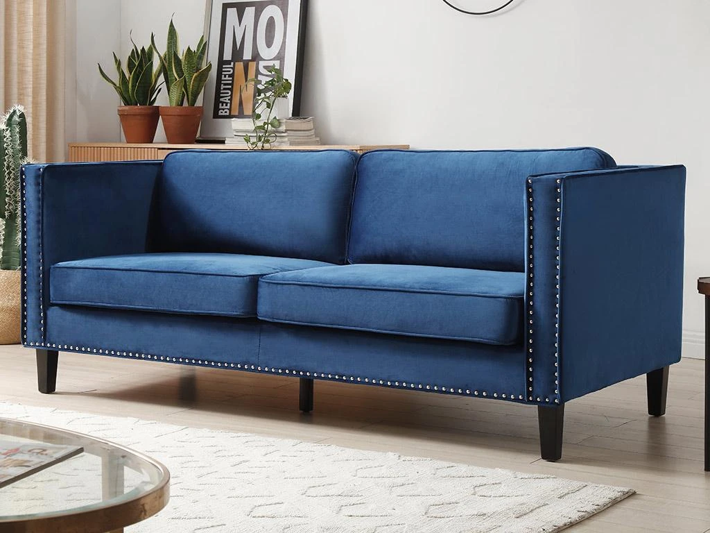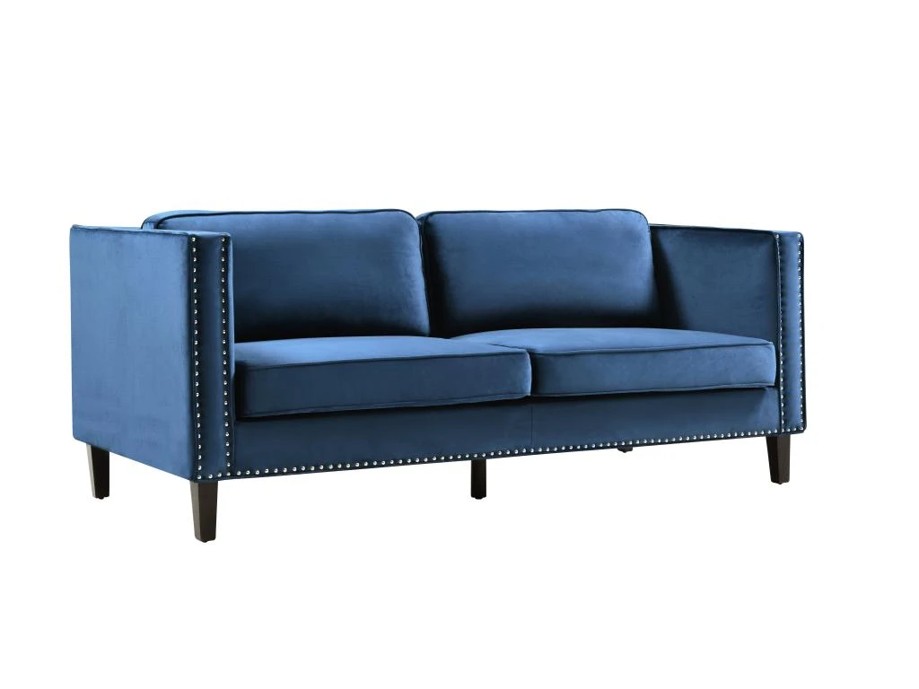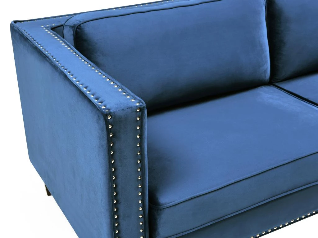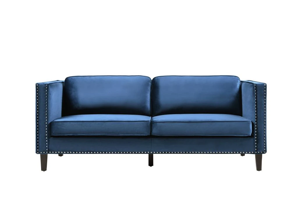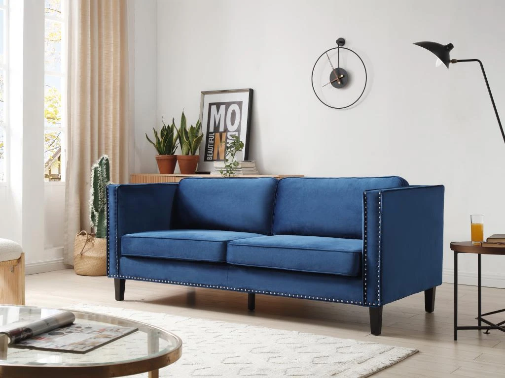 Besoin d’un canapé qui rendra votre intérieur unique ? Le canapé MASULI vous conviendra parfaitement. En alliant son élégance grâce à son revêtement en velours bleu et son originalité grâce à ses finitions cloutées, il apportera du cachet à votre salon.