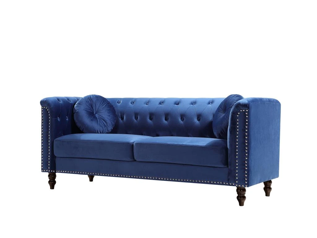 Envie d’une ambiance chaleureuse et vintage dans votre salon ? Le canapé TURNER sera votre canapé idéal. Inspiré du modèle mythique chesterfield, il apportera une touche vintage à votre intérieur. Son revêtement en velours ainsi que sa finition cloutée font de lui un canapé glamour qui donnera de la douceur et du cachet à votre pièce.