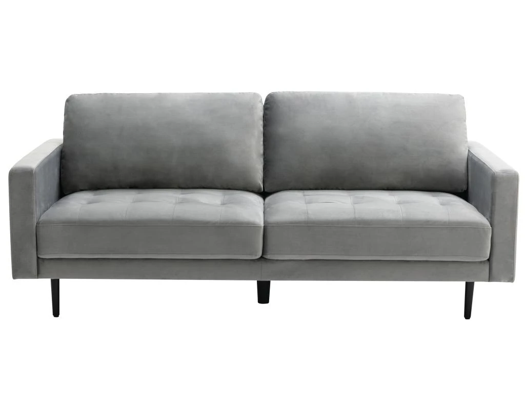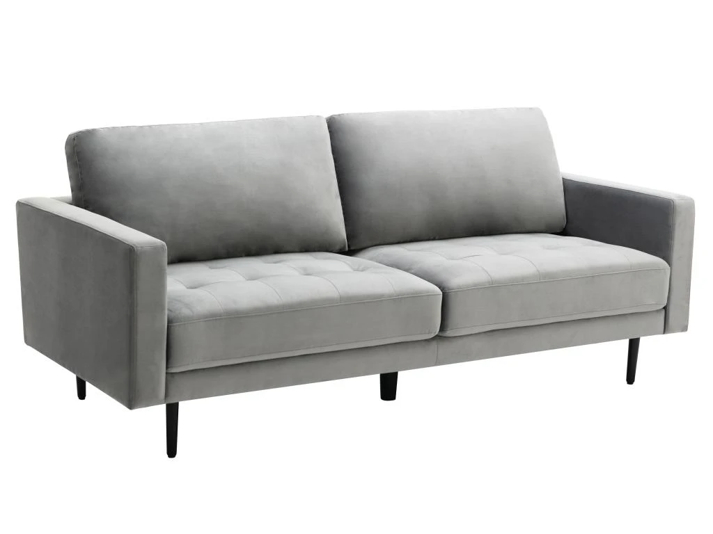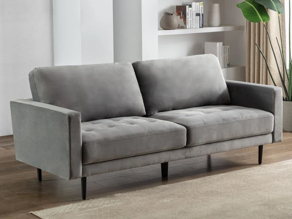 Vous désirez rendre votre intérieur chaleureux ? Laissez-vous tenter par la douceur et le style du canapé ESTELA. Son revêtement en velours, ses pieds en métal noir, son assise capitonnée et ses coloris tendances font de lui un canapé design et accueillant, tout en vous apportant un confort maximal.