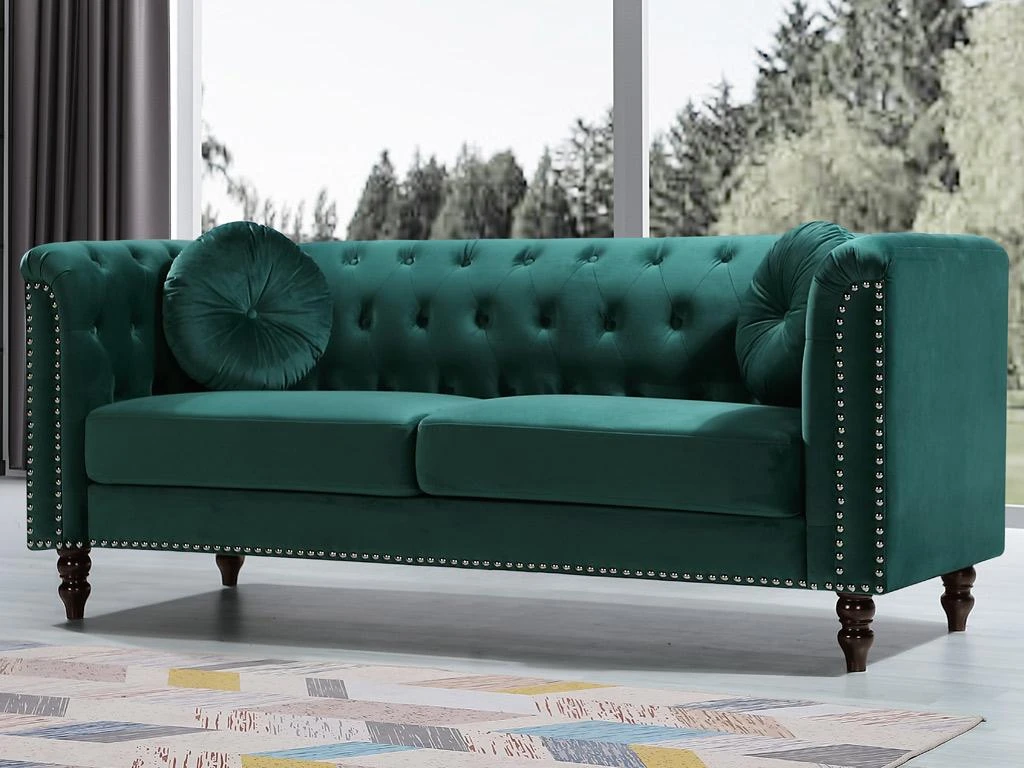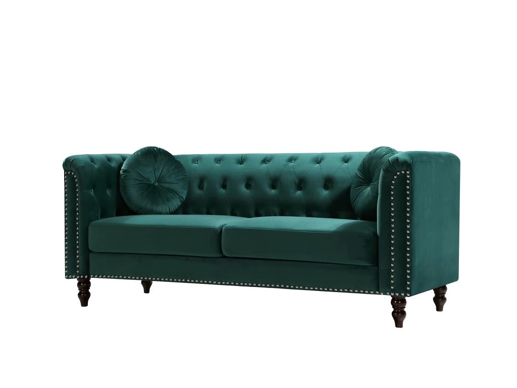 Envie d’une ambiance chaleureuse et vintage dans votre salon ? Le canapé TURNER sera votre canapé idéal. Inspiré du modèle mythique chesterfield, il apportera une touche vintage à votre intérieur. Son revêtement en velours ainsi que sa finition cloutée font de lui un canapé glamour qui donnera de la douceur et du cachet à votre pièce.