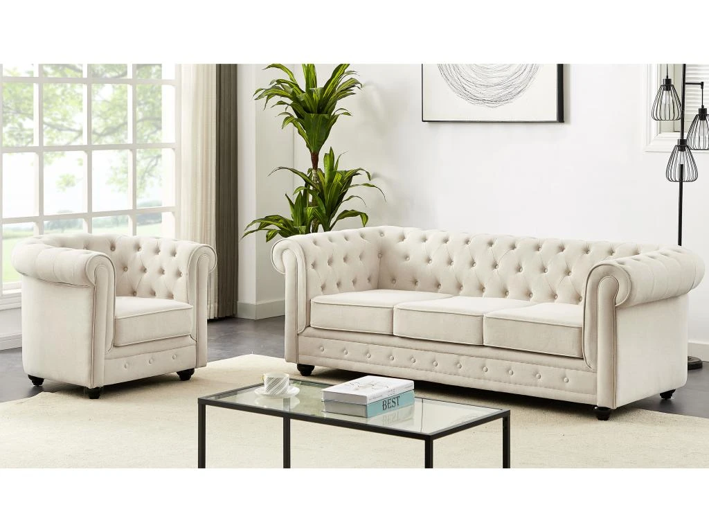 Vous souhaitez ajouter une touche élégante à votre intérieur ? Découvrez les canapés et fauteuils CHESTERFIELD. Doté d’un dossier richement capitonné, cet ensemble vous procure non seulement un soutien ergonomique, mais ajoute également une texture raffinée à l’ensemble. Le design intemporel du Chesterfield se marie harmonieusement avec différents styles de décoration, que ce soit dans un intérieur traditionnel ou moderne.