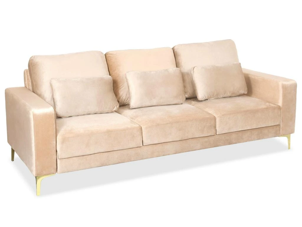 Le canapé JERIKO est un beau canapé au revêtement de velours ultra doux monté sur des pieds en métal doré. Le summum du chic et de l élégance pour un canapé moderne! Le canapé Jeriko trouvera sa place dans tous les intérieurs contemporains pour vous apporter une assise confortable partout où vous en aurez besoin.
