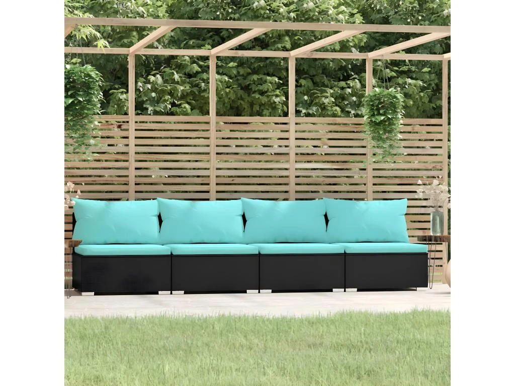 Le siège de patio est doté d’un cadre en acier robuste enduit de poudre et de pieds en plastique chromé, très durables. Le canapé 4 places est conçu avec de la résine tressée imperméable, ce qui le rend résistant à l’usure et adapté à une utilisation quotidienne en plein air. Grâce à sa construction légère, ce canapé de jardin est facile à déplacer. Les coussins bien rembourrés et amovibles sont très confortables. De plus, la conception modulaire permet également de placer l’ensemble dans n’importe quel arrangement ou de le combiner avec d’autres segments modulaires pour répondre à vos besoins !