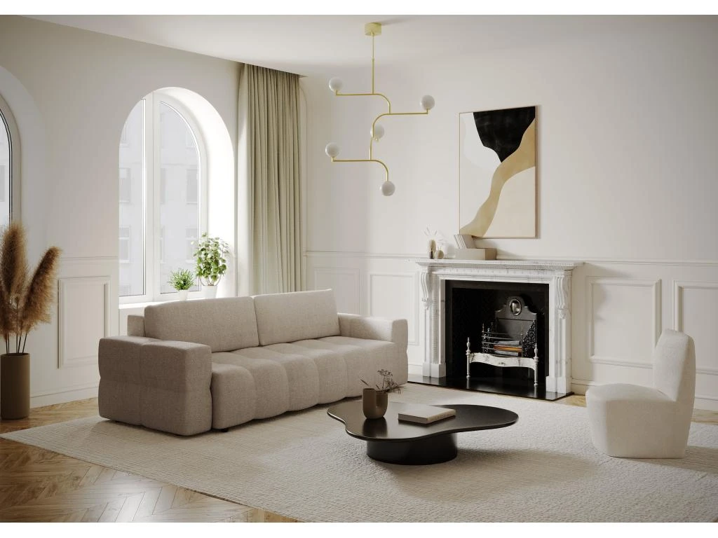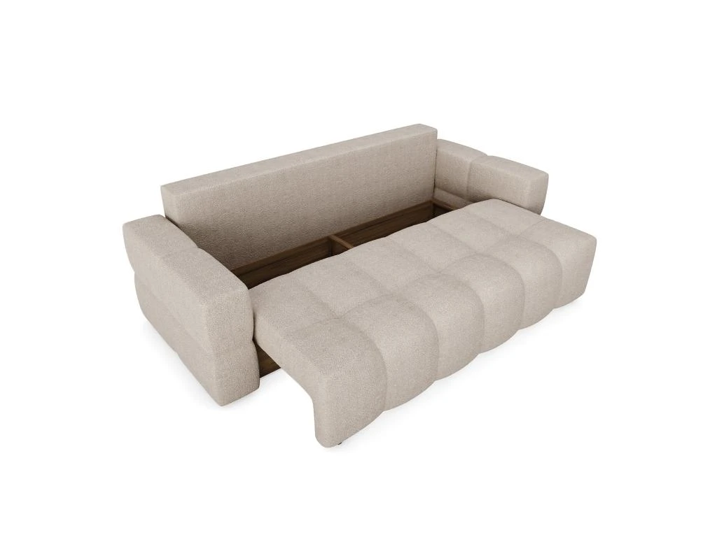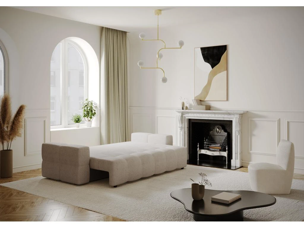 Les courbes design du canapé convertible Gabriel en feront la pièce maîtresse de votre salon. Spacieux et tendance, il vous apportera le confort absolu d’un couchage supplémentaire et le look idéal pour parfaire votre intérieur. Il est également dôté d’un élégant coffre de rangement finition effet noyer, aussi pratique qu’esthétique.