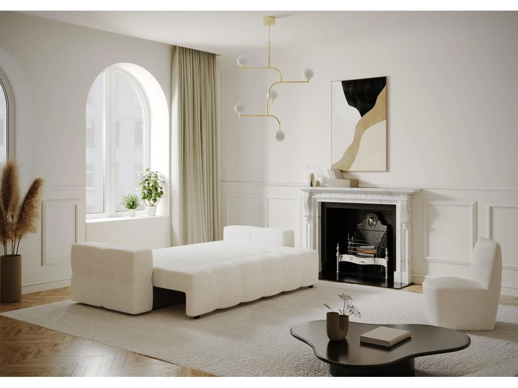 Les courbes design du canapé convertible Gabriel en feront la pièce maîtresse de votre salon. Spacieux et tendance, il vous apportera le confort absolu d’un couchage supplémentaire et le look idéal pour parfaire votre intérieur. Il est également dôté d’un élégant coffre de rangement finition effet noyer, aussi pratique qu’esthétique.