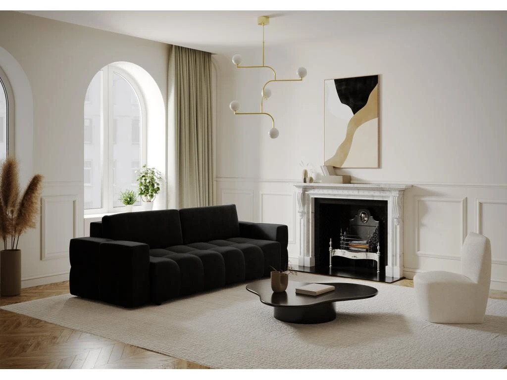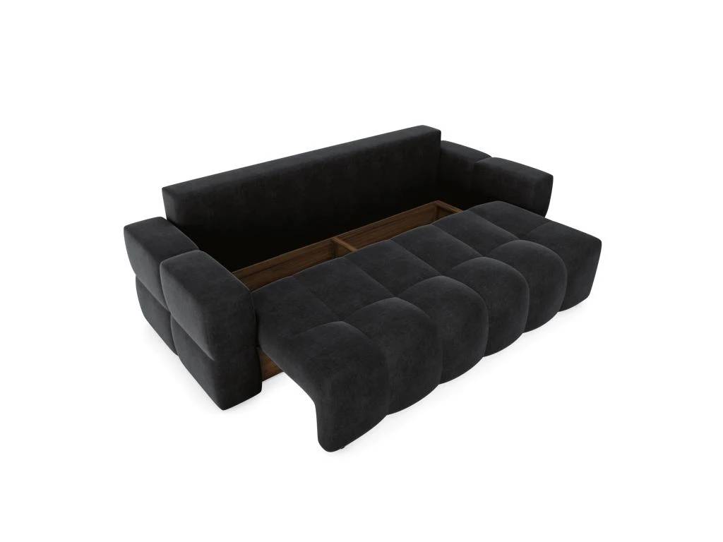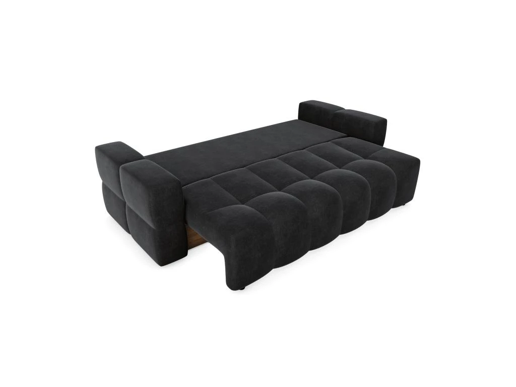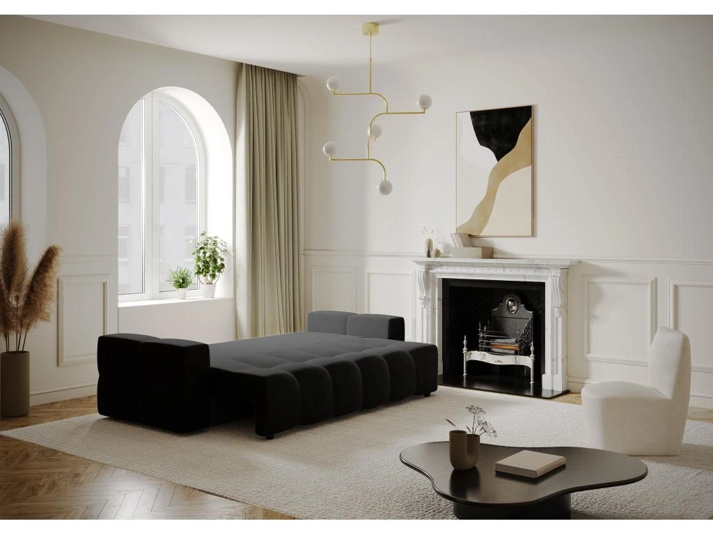 Les courbes design du canapé convertible Gabriel en feront la pièce maîtresse de votre salon. Spacieux et tendance, il vous apportera le confort absolu d’un couchage supplémentaire et le look idéal pour parfaire votre intérieur. Il est également dôté d’un élégant coffre de rangement finition effet noyer, aussi pratique qu’esthétique.