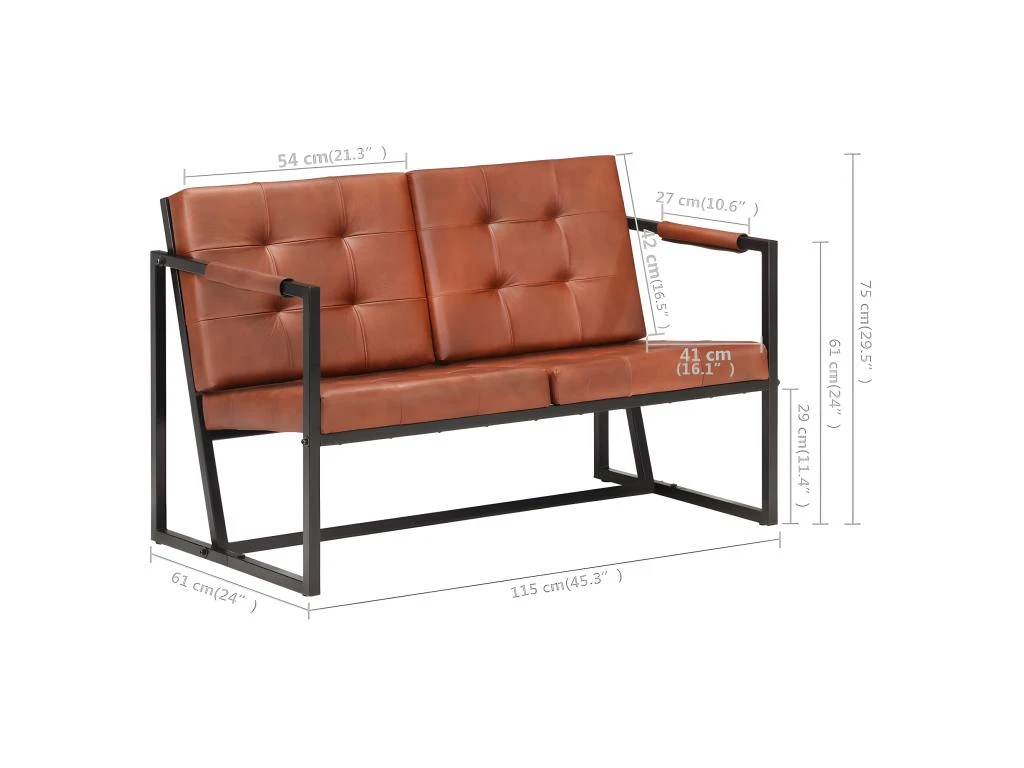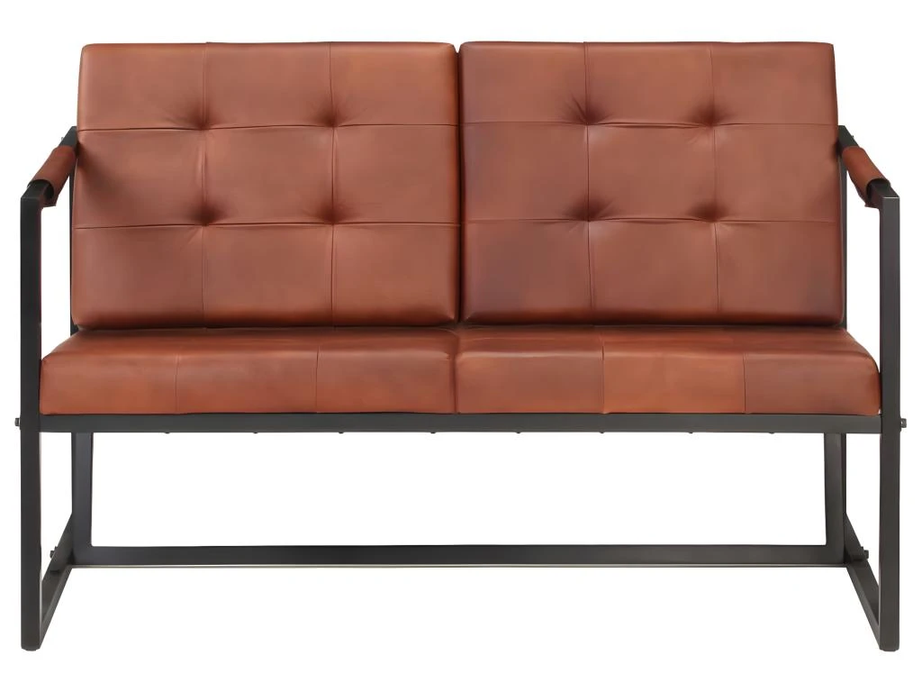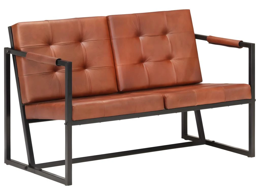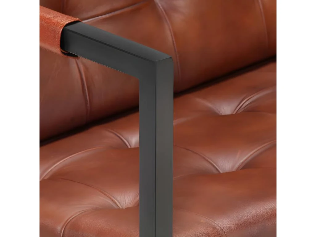 Ce canapé est rembourré en cuir de chèvre véritable robuste, offrant une excellente expérience d’assise. Le canapé est soutenu par des pieds en acier enduit de poudre, ce qui le rend stable et robuste.