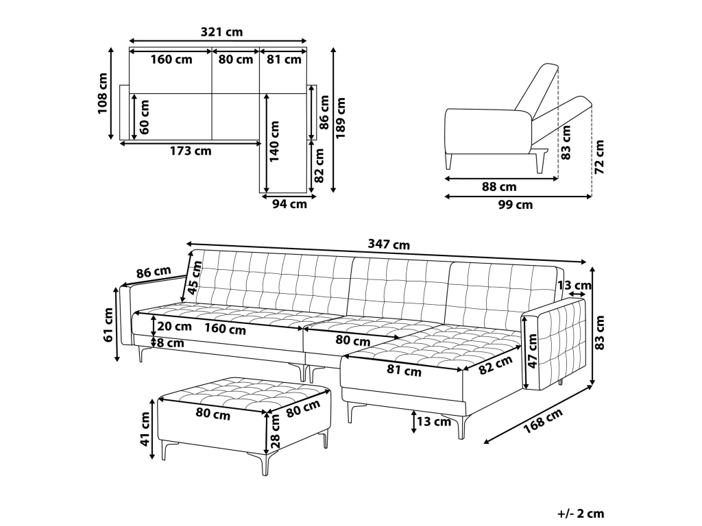 Caractéristiques clés: Facilement convertible en un canapé-lit, Peut être combiné avec d’autres modules du même modèle, Dossier réglable en 3 positions, Offre un grand moment de détente, Un confort d’assise optimal, Style élégant, Capitonnage décoratif classique, Rembourrage de qualité supérieure, Tissu soyeux et velouté