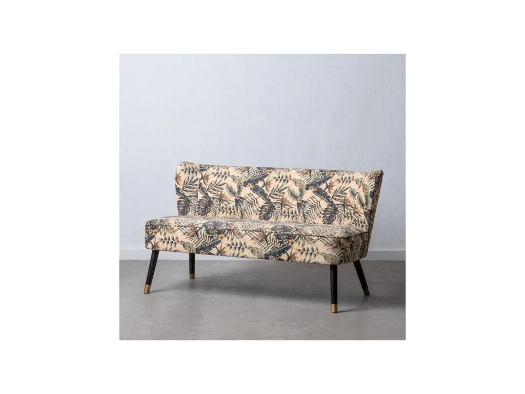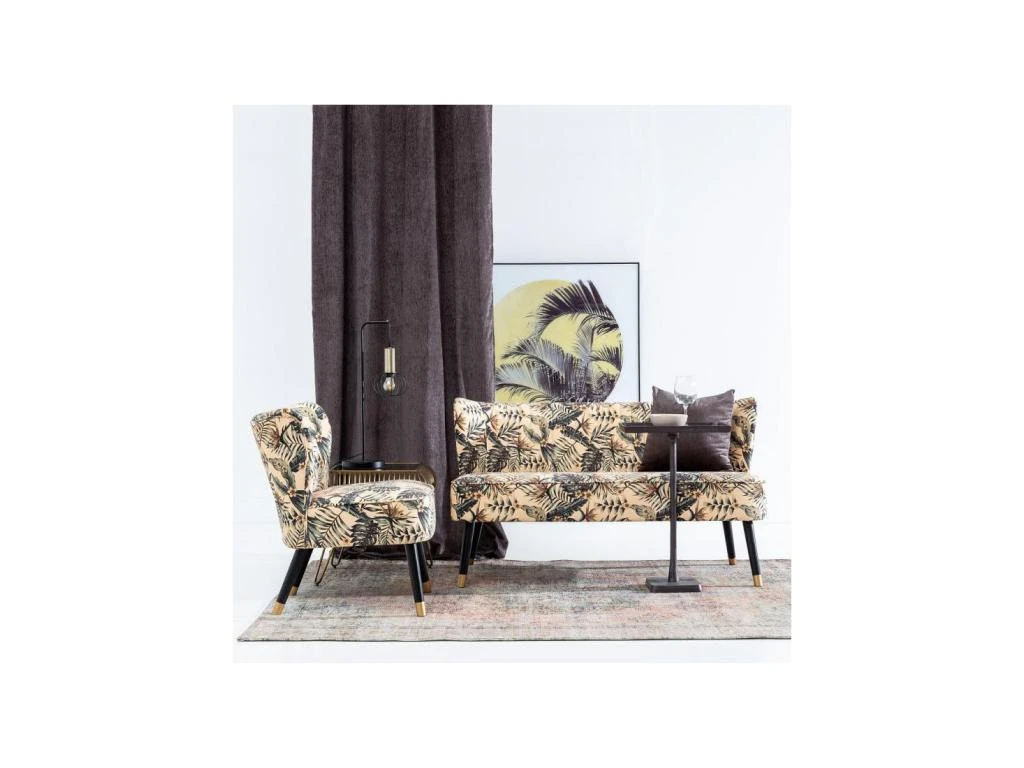 Donnez du peps à votre salon avec ce canapé d’appoint inspiré des meubles Rétro et mettant an avant un tissu Velours Beige à motifs feuilles.