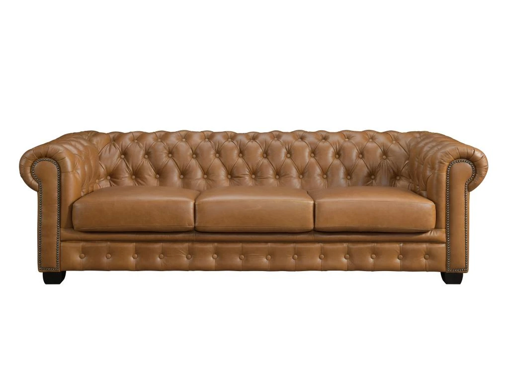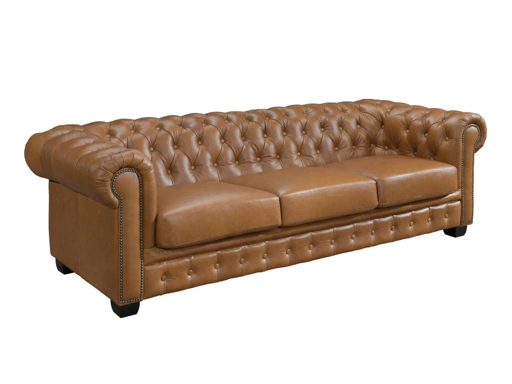 Vous êtes en quête du canapé et du fauteuil idéals pour sublimer votre espace de vie ? Découvrez la collection BRENTON, où le style industriel rencontre le confort absolu. Les canapés et fauteuils 100 % cuir de buffle pleine fleur, une matière noble et luxueuse, au design intemporel chesterfield, agrémentés d’accoudoirs cloutés et d’un aspect vieilli, ajoutent une touche d’authenticité à votre espace. Avec ce modèle haut de gamme, vous bénéficiez à la fois d’une durabilité exceptionnelle et d’une esthétique remarquable !