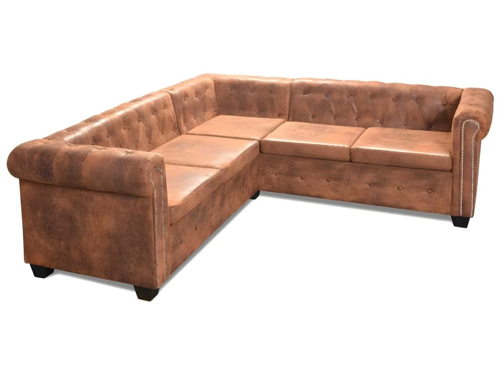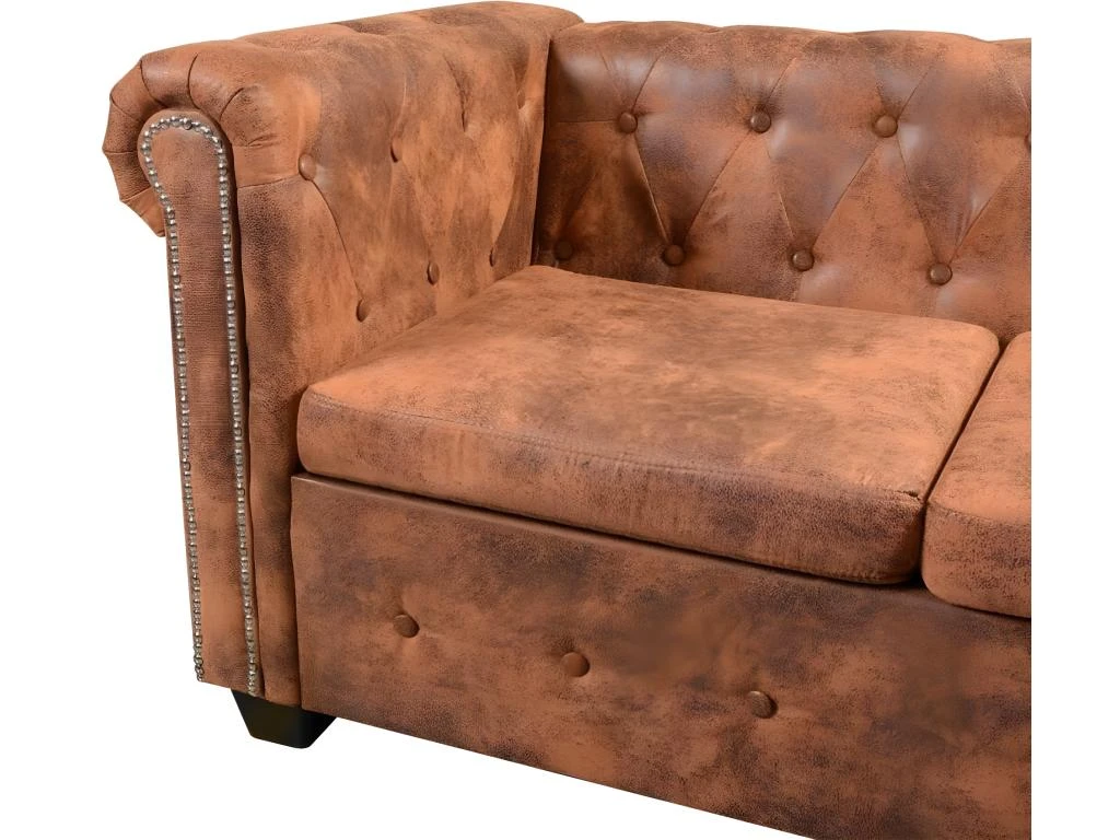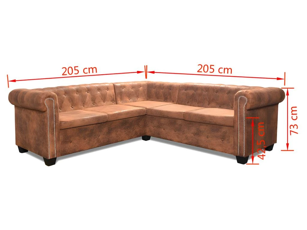 Ce canapé Chesterfield est la combinaison parfaite de confort et d’élégance et sera un excellent ajout à tout décor de maison ou de bureau. Ce canapé à 5 places, avec ses détails à touffes et à clous et ses accoudoirs courbés, va ajouter une touche de luxe, de classe et de style à tout décor intérieur.
