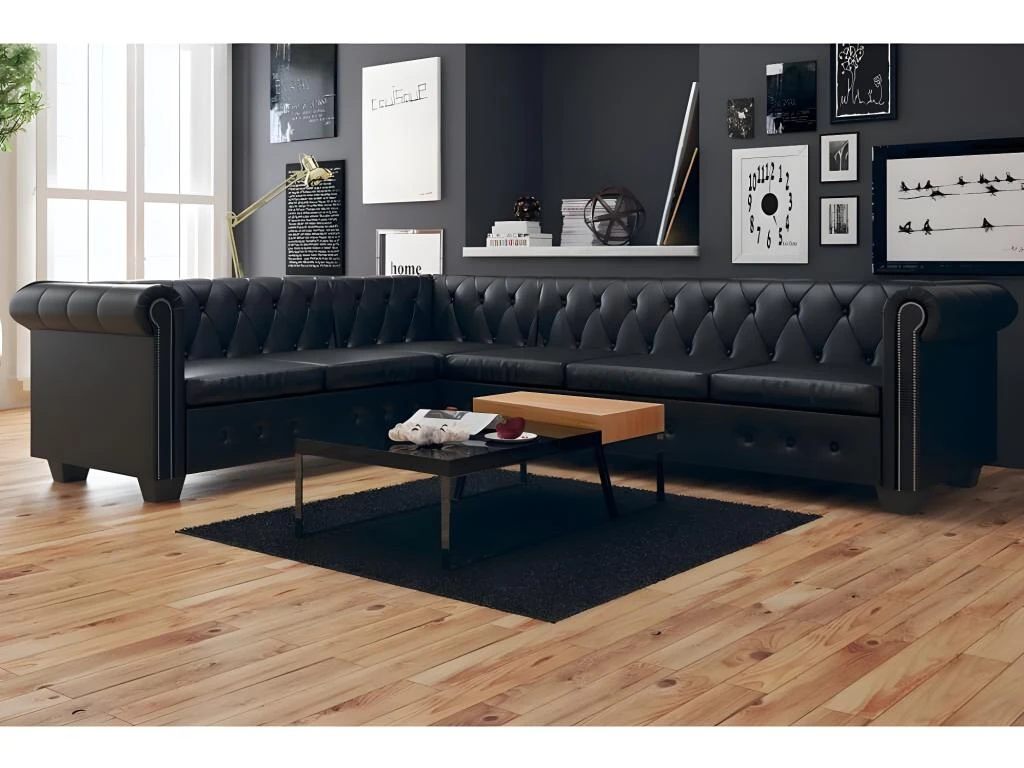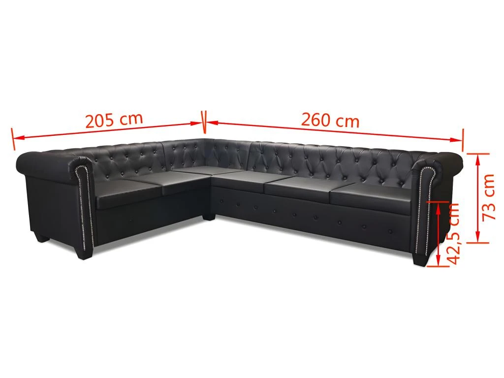 Ce canapé d’angle Chesterfield est la combinaison parfaite de confort et d’élégance et sera un excellent ajout à tout décor de maison ou de bureau. Ce canapé à 6 places, avec ses détails à touffes et à clous et ses accoudoirs courbés, va ajouter une touche de luxe, de classe et de style à tout décor intérieur.