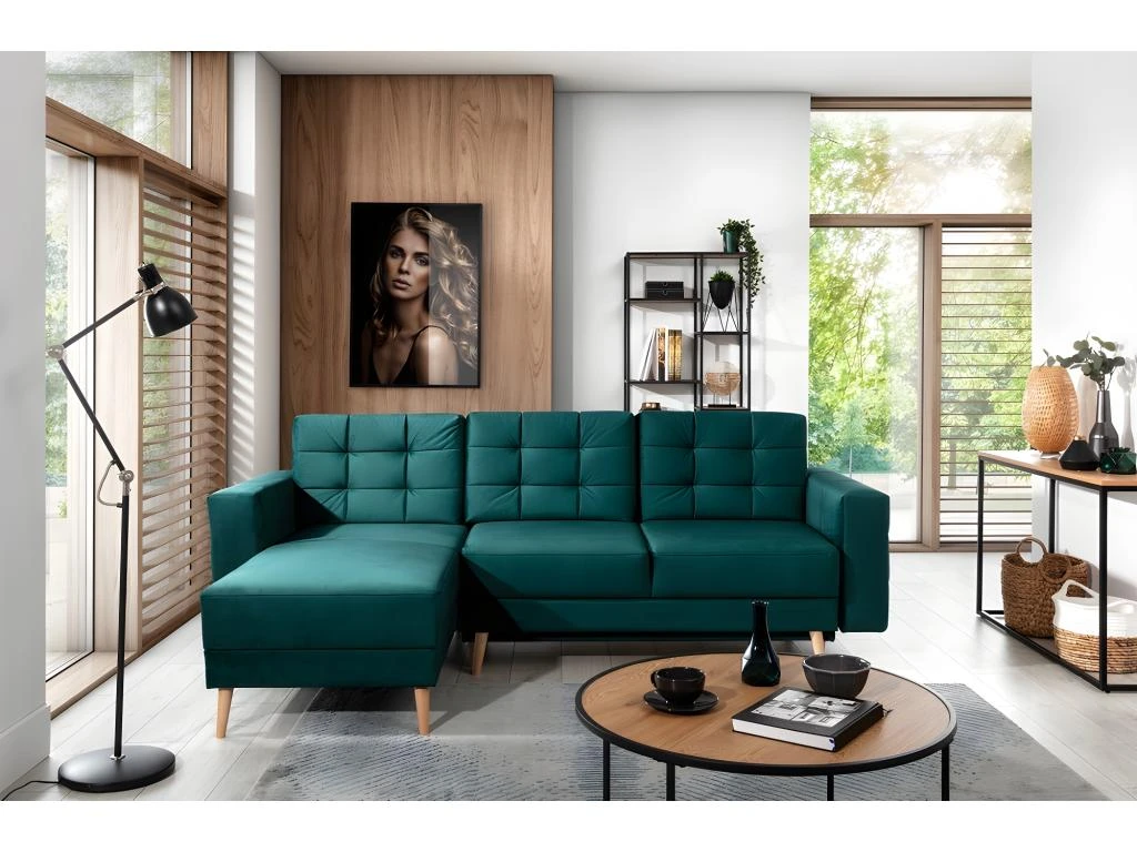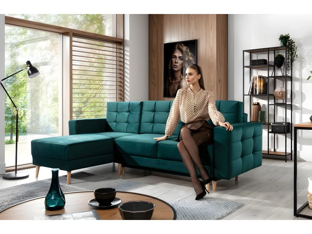 Assises profondes, dossiers ergonomiques et accoudoirs hauts : telles sont les caractéristiques du canapé d’angle ASSIA, qui mise sur le style et le confort. Et ce n’est pas étonnant, car il est destiné à être raffiné par sa conception tout en assurant le plus haut niveau de confort possible. Le style s’inspire de thèmes rétro. Même si le canapé ASSIA conviendra parfaitement dans un intérieur contemporain. Il vous surprendra par le soin apporté au niveau des belles finition et du détail, telles que les coutures élégantes et le capitonnage subtil sur les côtés et les dossiers, ainsi que par ses jolis hauts pieds en bois. Il est proposé en plusieurs couleurs. (Et d’autres tissus).