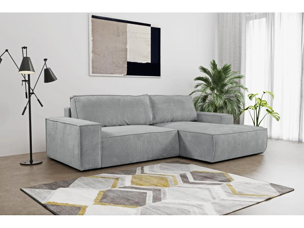 Le canapé d’angle convertible AMELIA en velours côtelé est la pièce qui viendra sublimer votre salon grâce à son élégance et à l’accueil doux et confortable qu’il vous offrira. Ce modèle est aussi très fonctionnel. Convertible et pratique, vous pourrez le transformer en un couchage supplémentaire très rapidement et aussi ranger vos affaires dans le coffre sous l’assise.