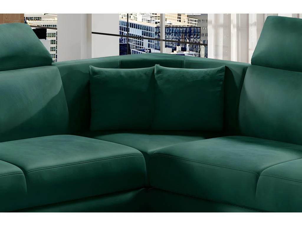 Très joli canapé d’angle convertible en tissu de qualité luxe, avec son assise très confortable. Avec tiroir de rangement. Matières haute qualité. Appui-têtes réglables. Espace de couchage. Tissu très doux de la catégorie luxe. Très bonne qualité de fabrication européenne. Pour réussir sa décoration intérieure et profiter d’un excellent confort. Bel espace de couchage. De style contemporain et conçu pour répondre aux plus exigeants.