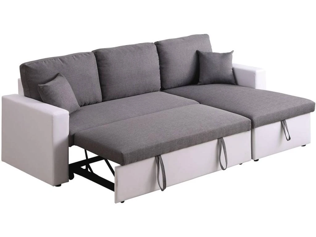 : Coussins inclus Dimensions du couchage : 192 x 137 x 43.5 cm Espace de stockage (méridienne) : 138 x 58 x 23 cm.