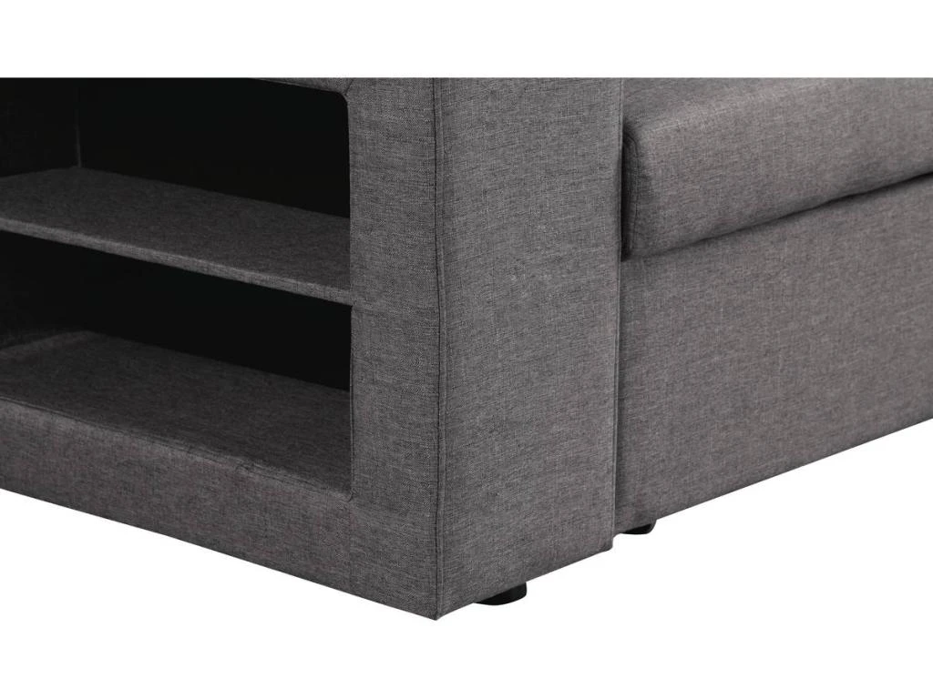 Joignez le fonctionnel avec l’esthétique grâce à ce canapé d’angle convertible en Lin ! Ce canapé moderne en lin est doté d’étagères intégrées sur le côté qui sont conçues pour offrir un gain de place précieux et pourront accueillir des livres des magazines ou encore la télécommande de votre téléviseur. Offrant 3 vraies assises, ce canapé se démarque grâce à son design avec son revêtement en lin capitonné qui ajoutera une note d’élégance à votre intérieur. Ce canapé présente aussi l’avantage de pouvoir s’intégrer dans toute sorte d’environnement en y ajoutant une touche de convivialité grâce à ses lignes épurées et intemporel et ses coloris sobres. Descriptif : Canapé d’angle convertible Axel – Lin – Canapé: 233 x 146 x 86 cm – Couchage: 192 x 136 x 44 cm – Espace de stockage (méridienne) + étagère.