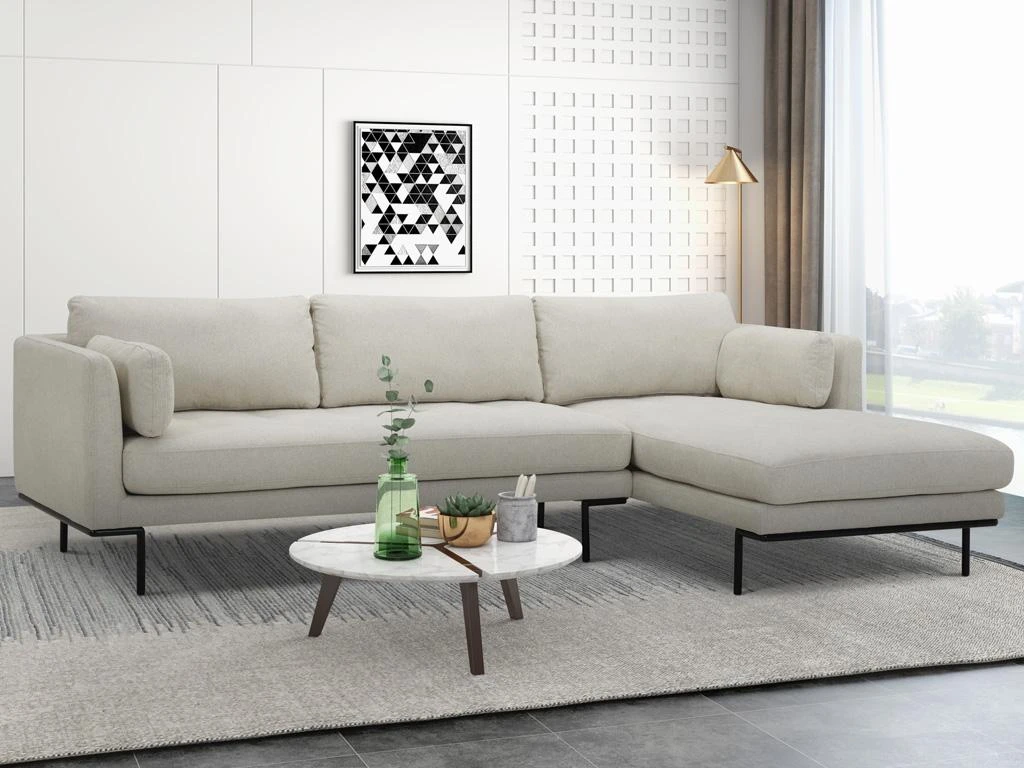 Vous aspirez à un intérieur à la fois design et tendance ? Le canapé d’angle en tissu ISABELLA aux pieds en métal noir, en est la réponse parfaite. Ses dimensions généreuses ainsi que ses coussins décoratifs vous plongeront dans un confort absolu !