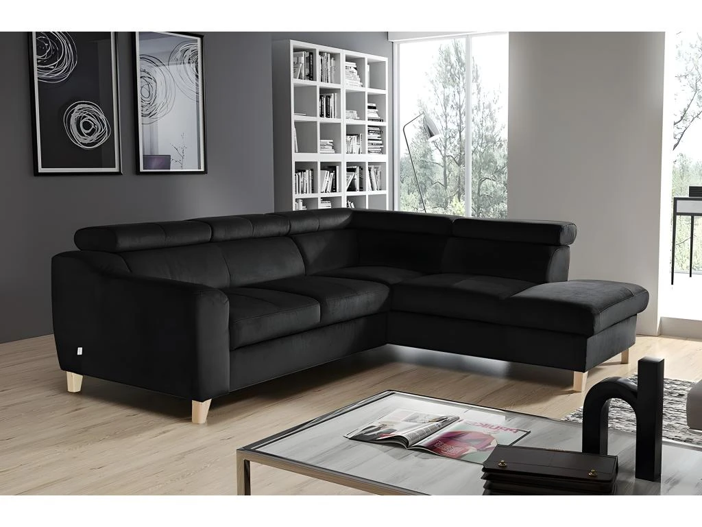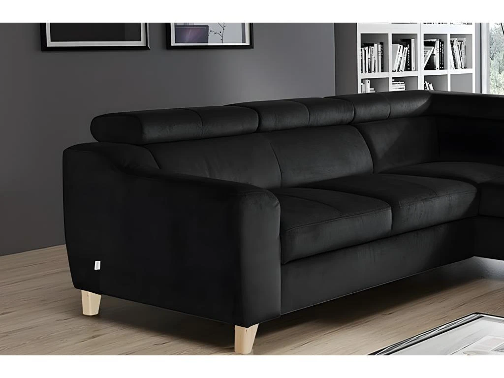 Canapé D’angle En Tissu Luxe 5 Places, ASHLEY, Noir, Angle Droit (vu De Face)