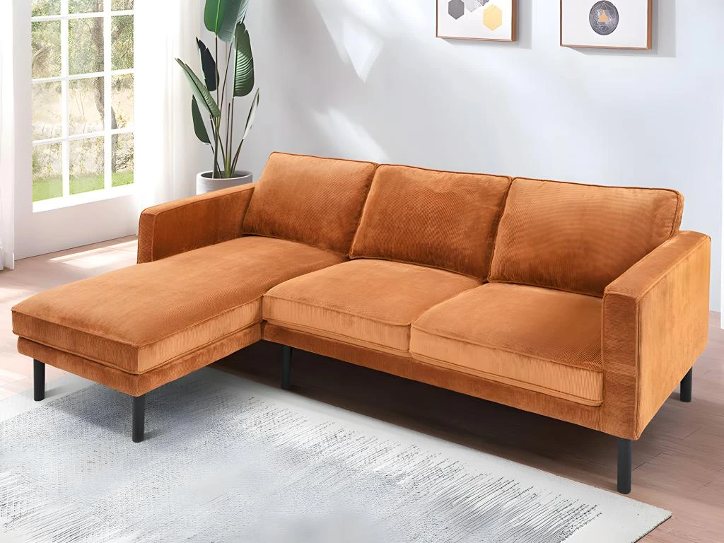 Le canapé d’angle MIKE va vite devenir la pièce incontournable de votre intérieur. Son revêtement tout doux en velours côtelé apportera une touche cocooning et vintage dans votre salon.
