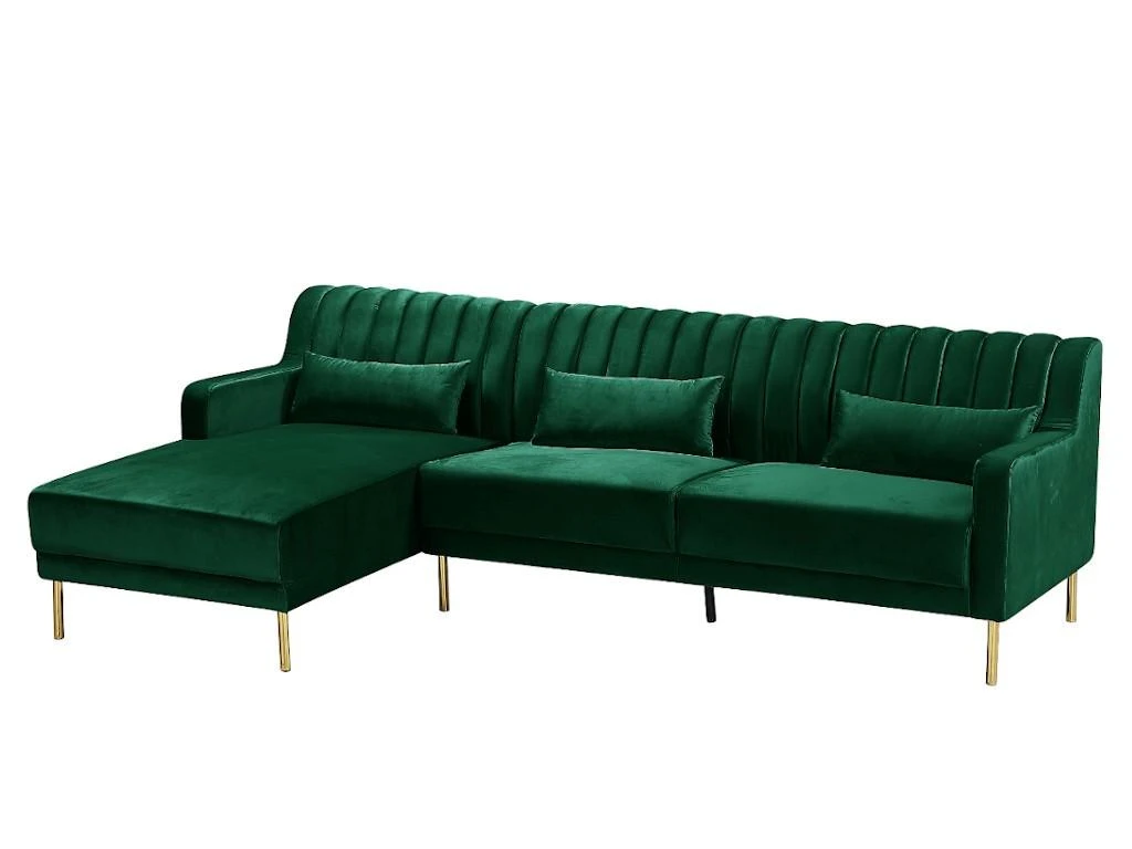 Avec ses pieds en métal doré, son revêtement en velours, son dossier strié et ses 3 coussins de déco offerts, le canapé MEYREUIL ne manque pas d’atouts pour vous séduire ! Telle une invitation à vous asseoir, il n’attend que vous !