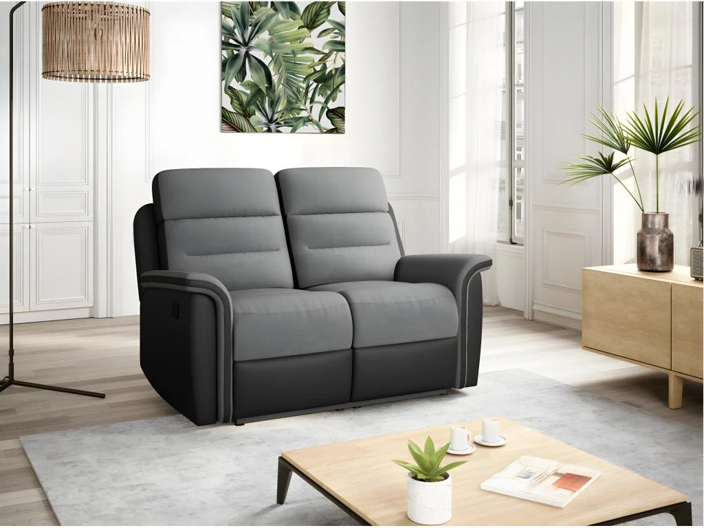 Le revêtement bi-matière en simili et microfibre apporte à ce canapé relax un esprit moderne. Ce canapé 2 places est garni de mousse autant au niveau de l’assise que des accoudoirs, ce qui le rend extrêmement confortable. Le canapé de relaxation LÉON sera votre allié idéal pour vous assoupir, lire un livre ou regarder la télévision en étant confortablement installé.