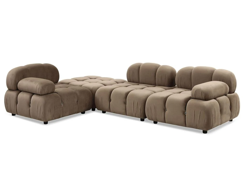 Le revêtement en velours ultra doux met en valeur le matelassage de l assise et du dossier de ce grand canapé modulable.