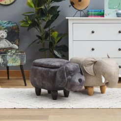 Tabouret Veau Pouf Animal Repose-pied Coussin Ottoman Siège Enfants WOMO-DESIGN