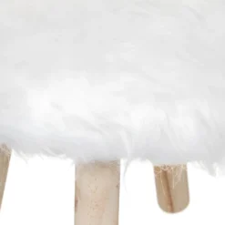 Tabouret Pour Enfant Lapin En Bois Et Fourrure Blanche H 38 Cm