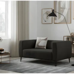 Canapé 2 Places Convertible Express En Tissu EMIR – Anthracite – Couchage 120 Cm – Matelas 18 Cm