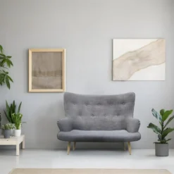 HELICIA – Canapé Fixe 2 Places Tissu Gris
