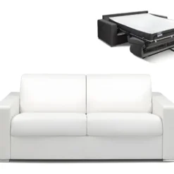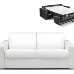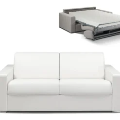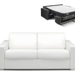 Canapé 3 Places Convertible Express En Simili CALITO – Blanc – Couchage 140 Cm – Matelas 14 Cm