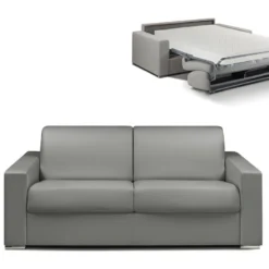 Canapé 3 Places Convertible Express En Simili CALITO – Gris – Couchage 140 Cm – Matelas 14 Cm